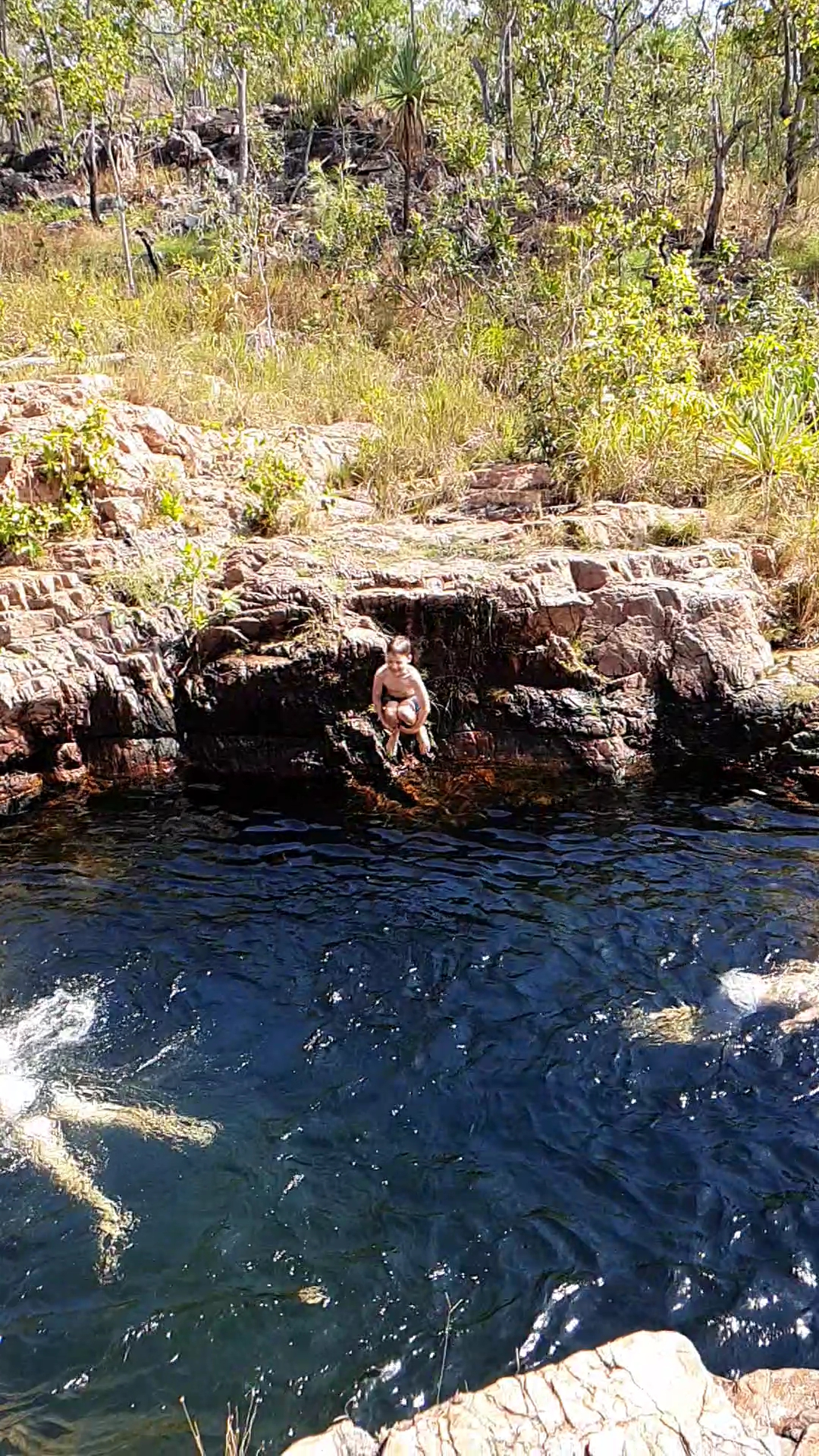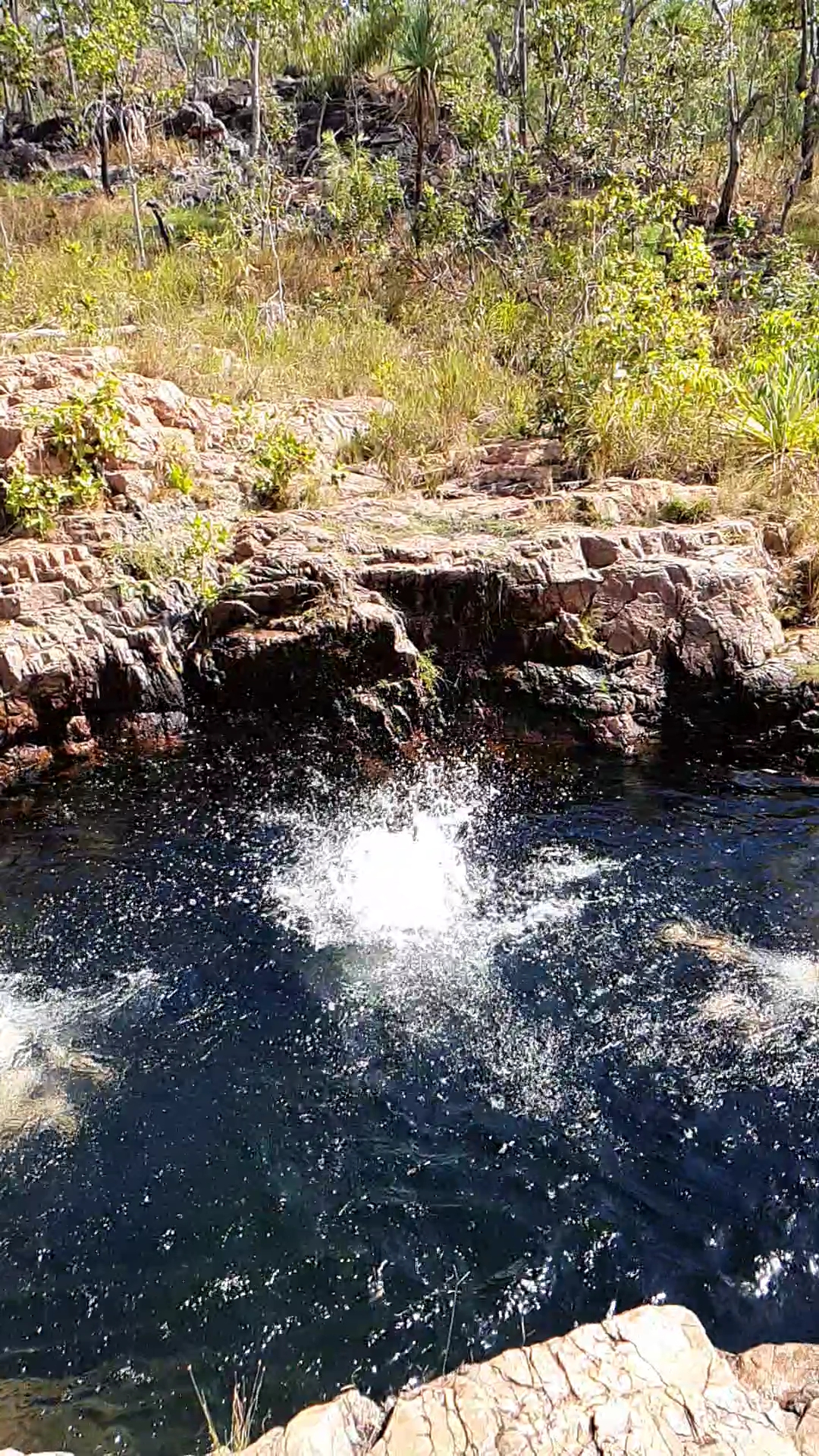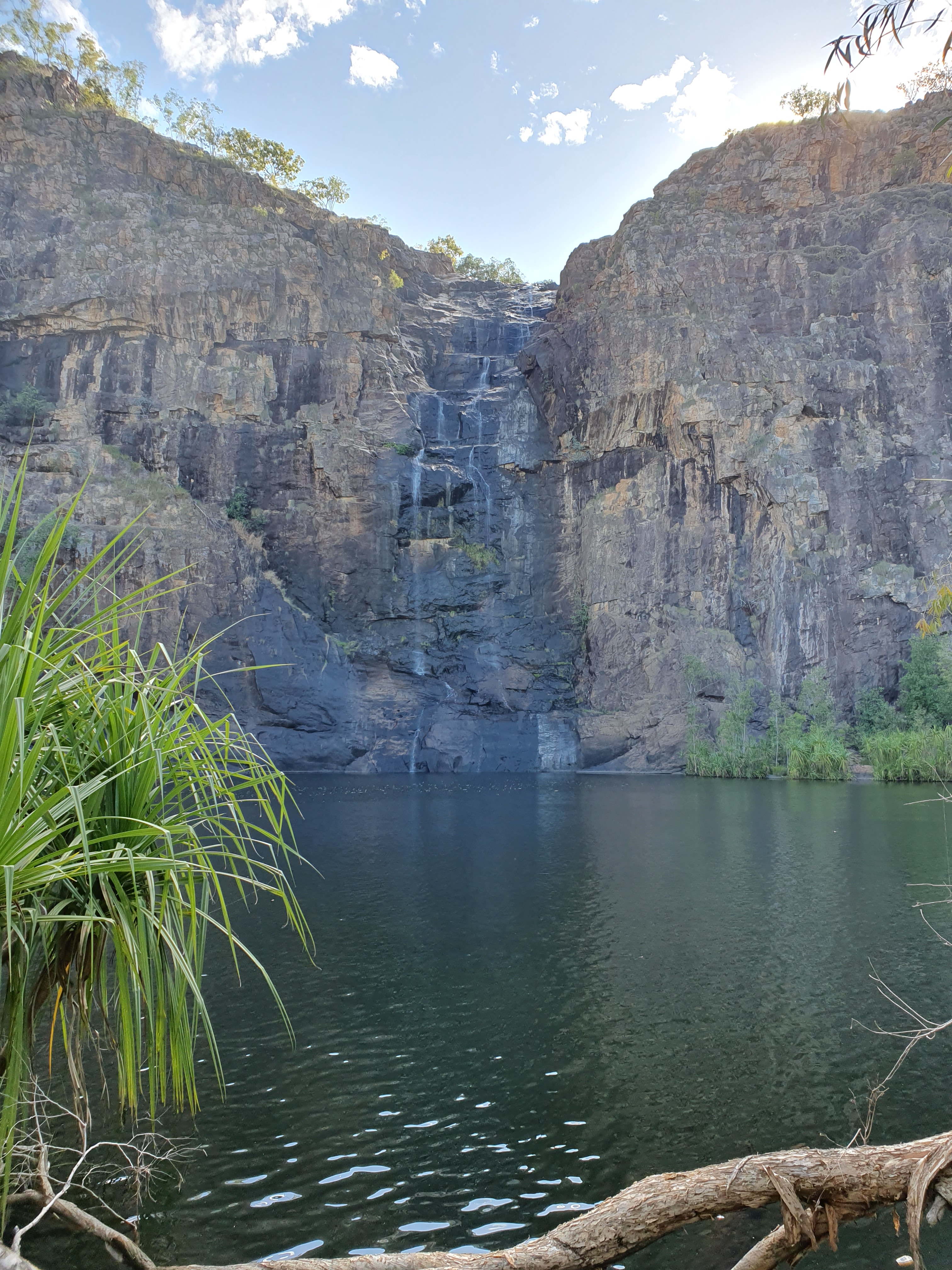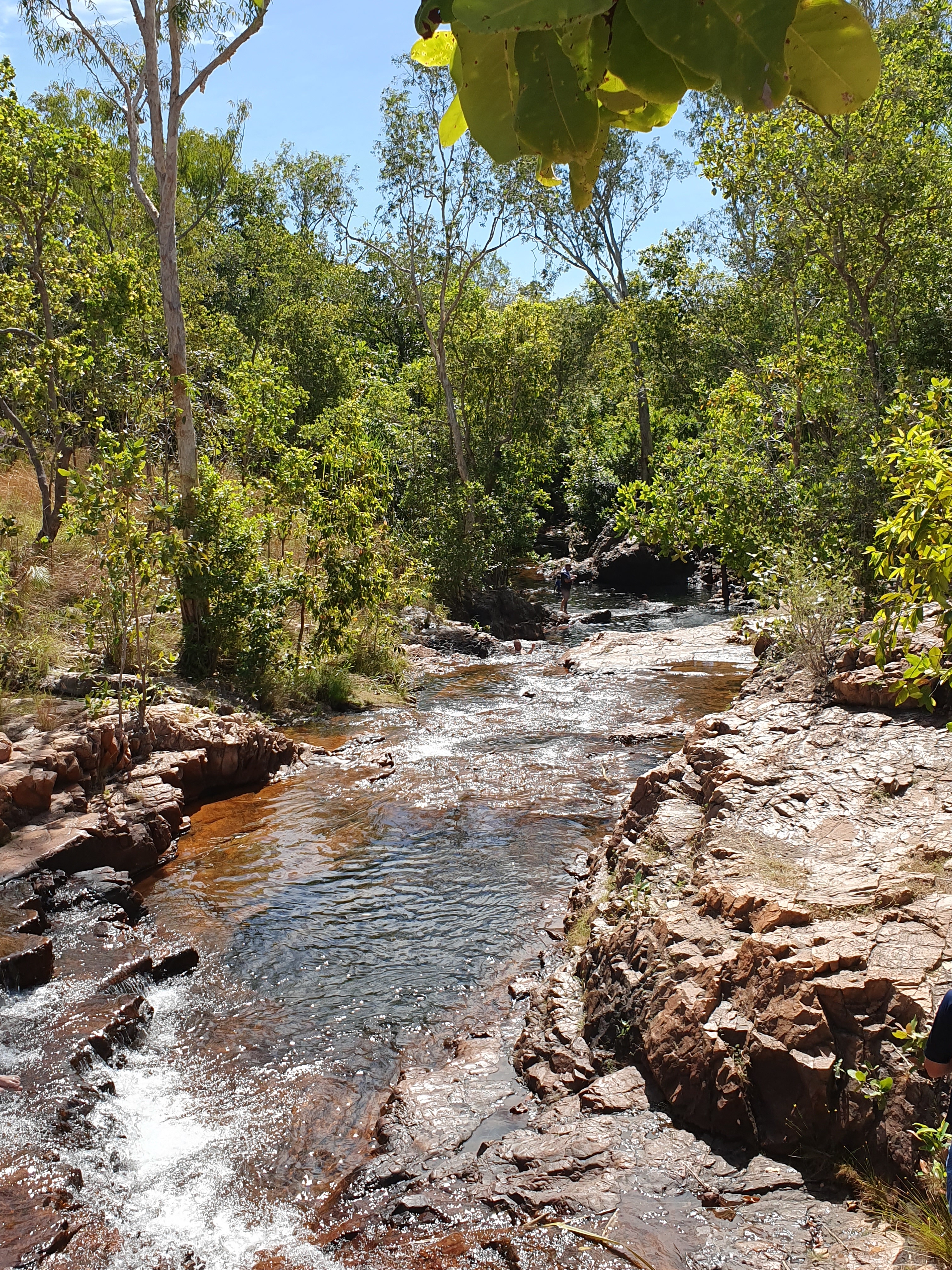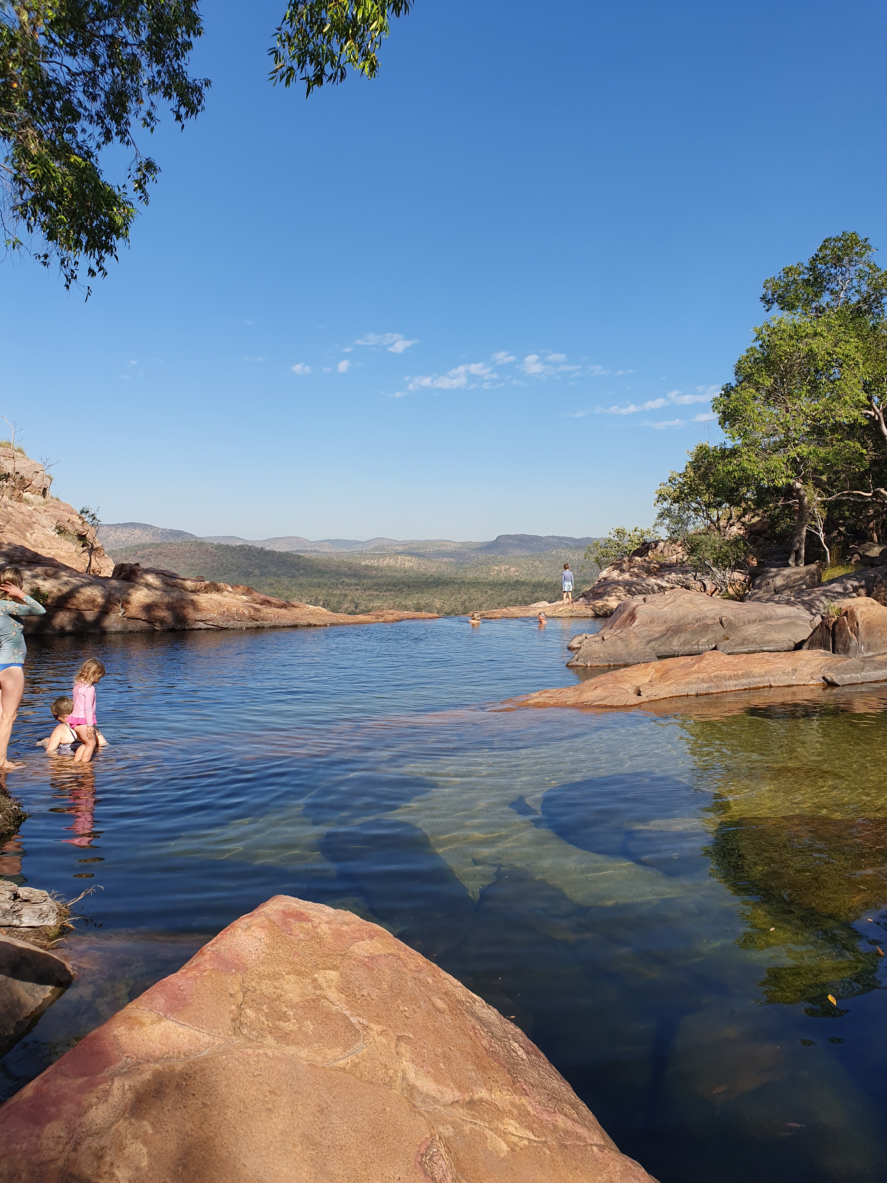Next morning we trekked up the path alongside the waterfall to a fantastic swimming spot at the top of the escarpment. It was just like a natural infinity pool and really beautiful.