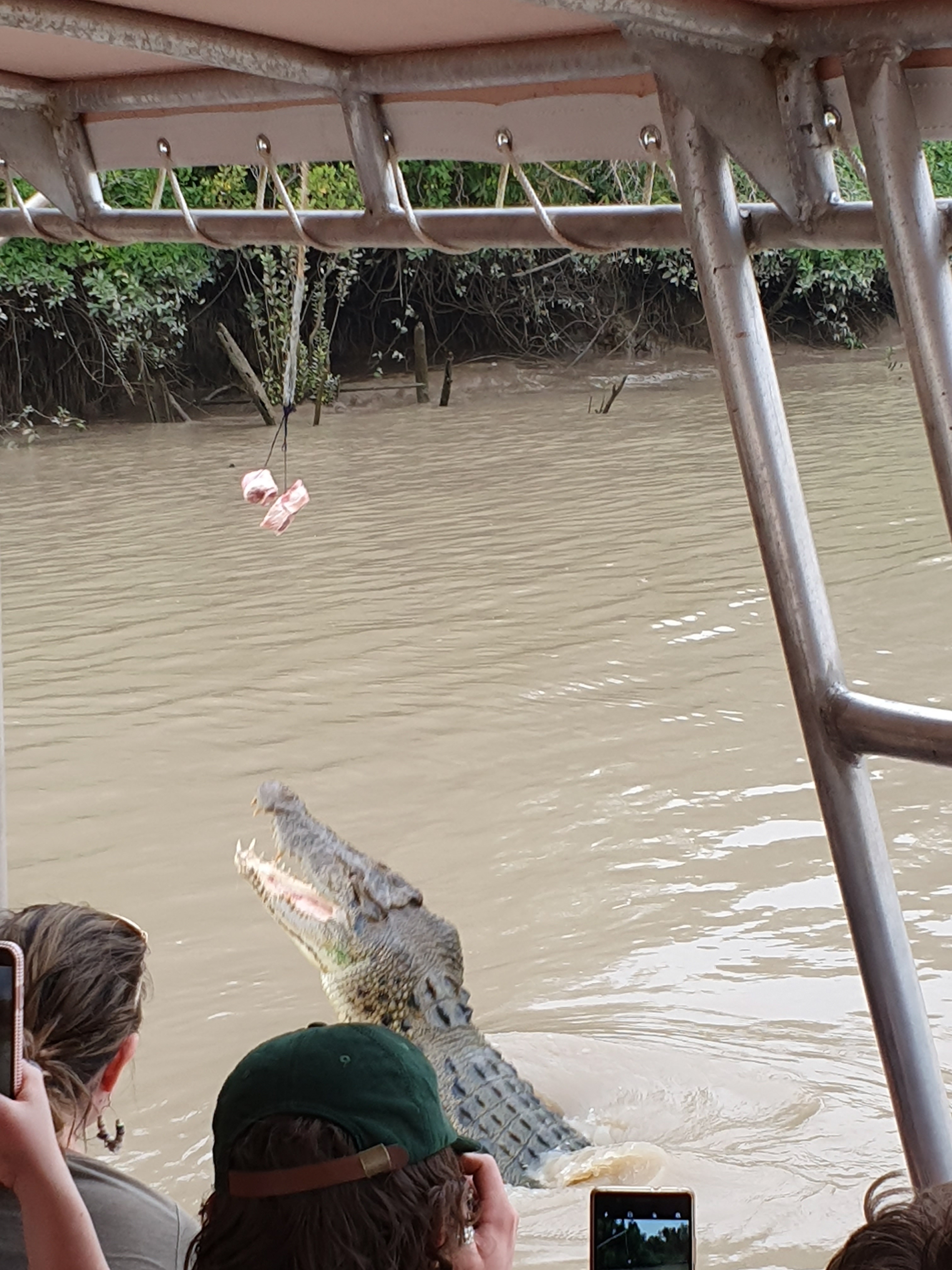 For the afternoon Robbie, Estella and I went for a crocodile jumping trip. Edwina and Vivienne deciding to relax instead. The crocodile tour was very busy and wow, what a lot of crocs in that river. We saw about 10 in 60 minutes and the largest was approximately 6 metres. They fed them pork chops on a stick, getting them to jump up. Amazing how high they can get. Easily 150cm out of the water.