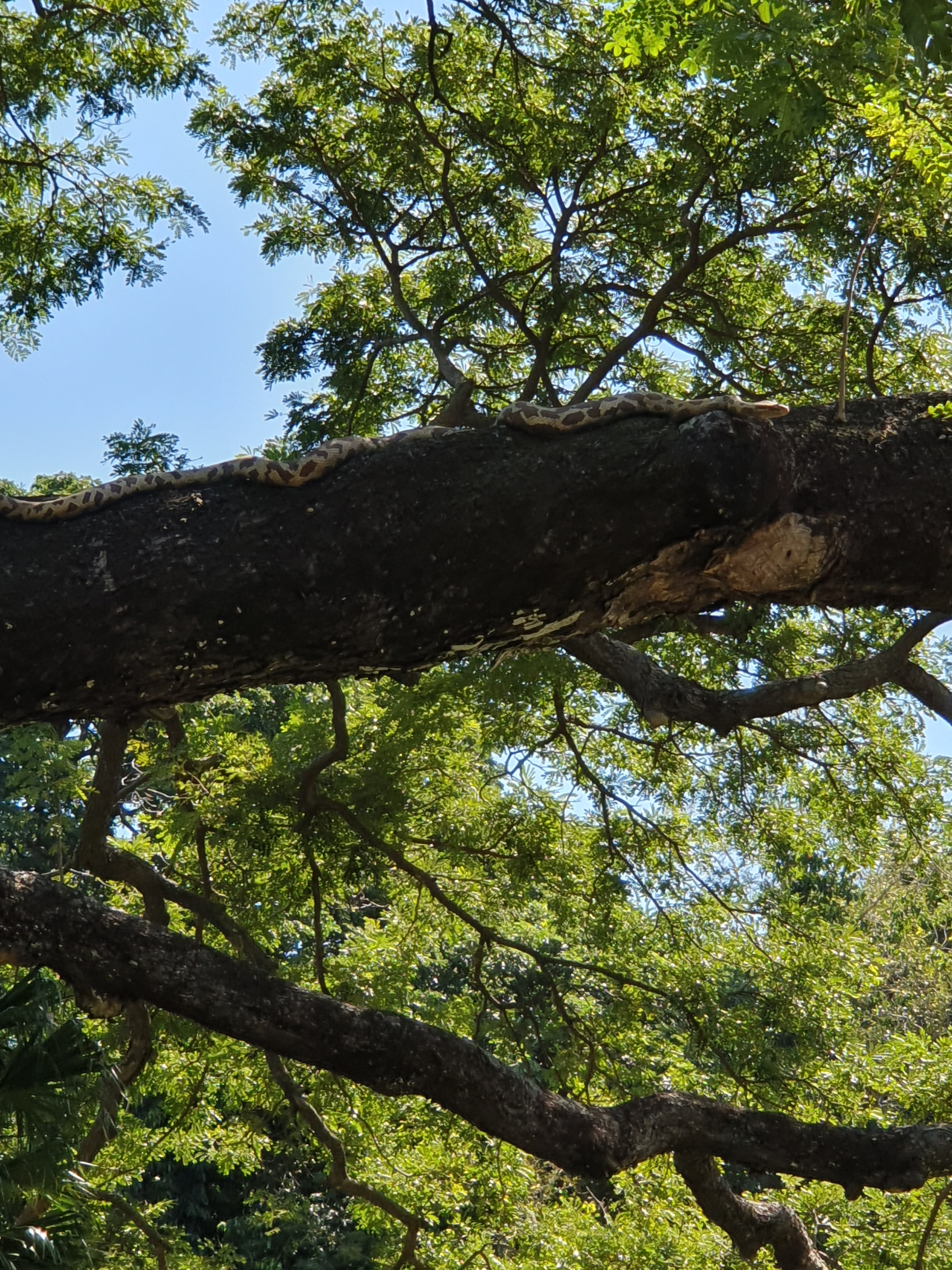 Impressive python in tree at botanical gardens