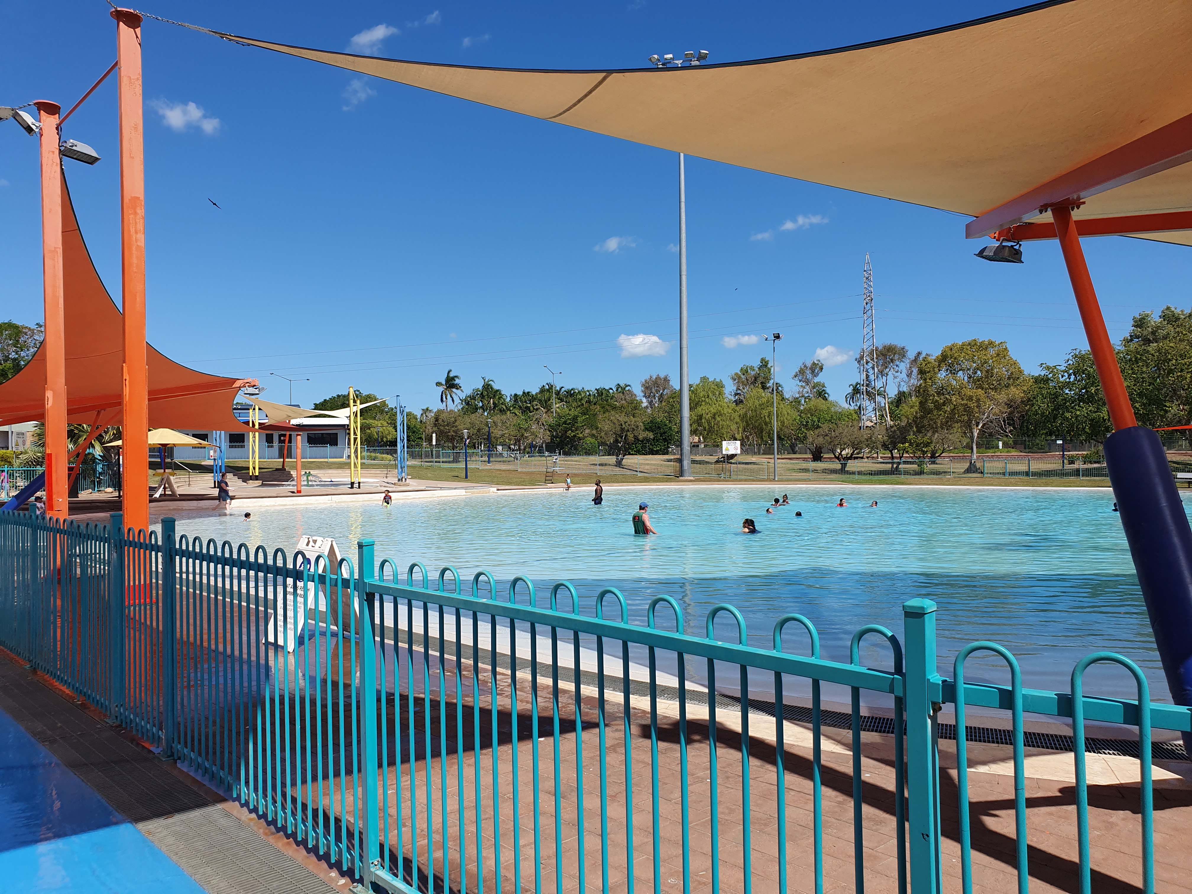 Darwin was only 90mins away and there was great excitement as we drove into the biggest city we had seen for ages. We had an apartment at the waterfront development next to the artificial swimming beach and with ocean views. Really nice place and very convenient. More of a concern was the caravan service. A real backstreet operation that did not inspire confidence, but too late now. What’s more Monday was a bank holiday. We decided that we should extend the darwin stay for another night to make planning easier. I went off to replace the caravan tyre, while Edwina took the kids swimming.