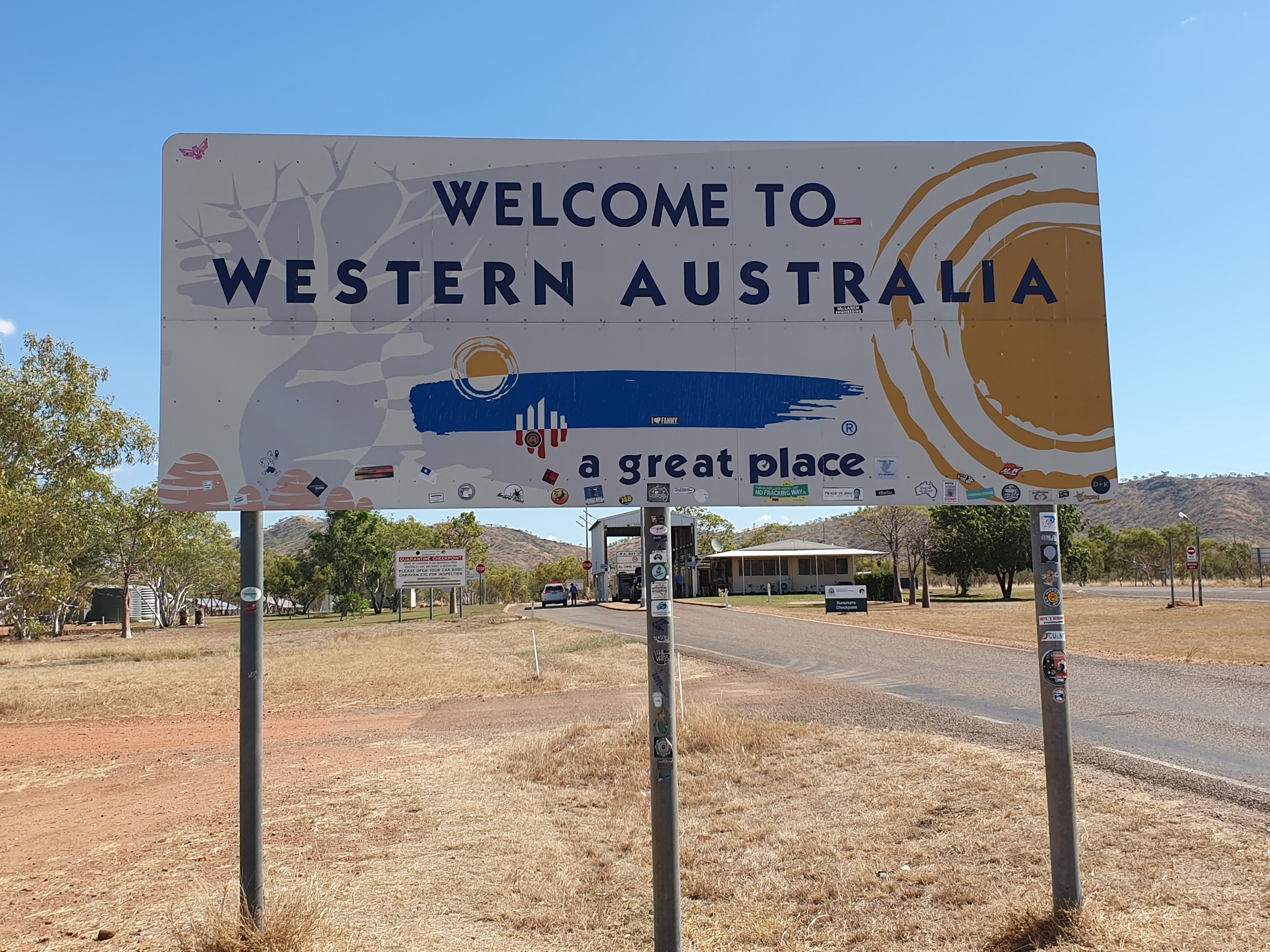 On we went to WA border with only a brief stop for some lunch. At the border we had to dump all fruits and vegetables as well as the honey. Also a 90min change in time zone.