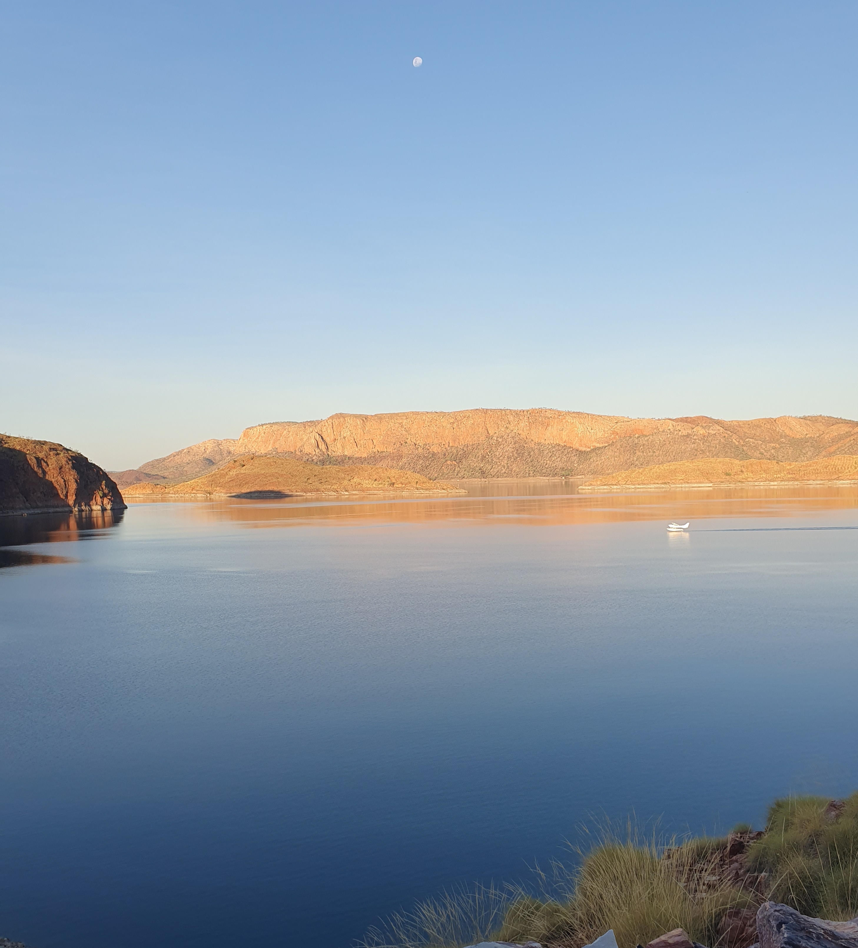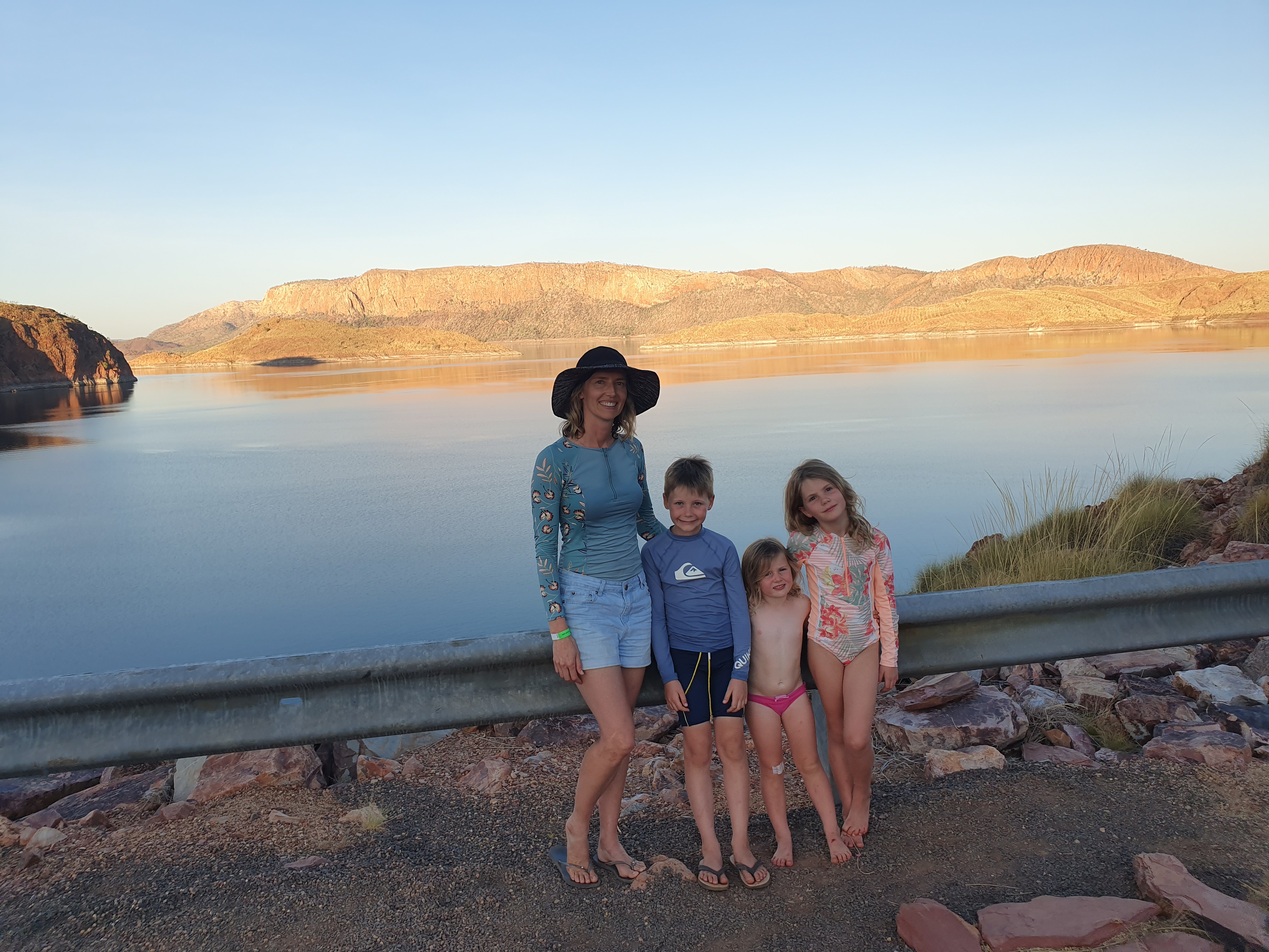 Next day everyone up at 05.40 when the sun came up as now in WA and time zone change! As we were up so early we went for a walk to see the Ord River and then in the afternoon went down to swim in the Lake (we were pretty much the only people there, everyone else went to the pool which was packed). We took the kayak out, Robbie had to chuck in a line and lo and behold 3 little catfish later he was happy. Lovely in lake and really pretty. We were assured freshwater crocodiles are not a problem as they are so shy, they run away. Just as well as there are supposed to be 35,000 in Lake Argyle!